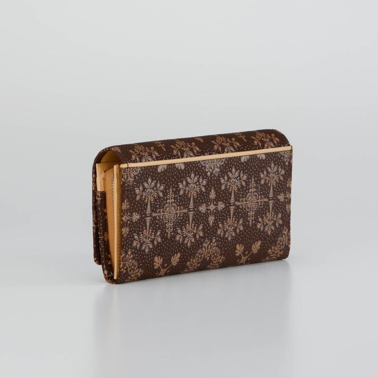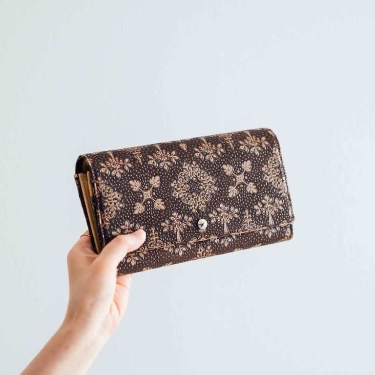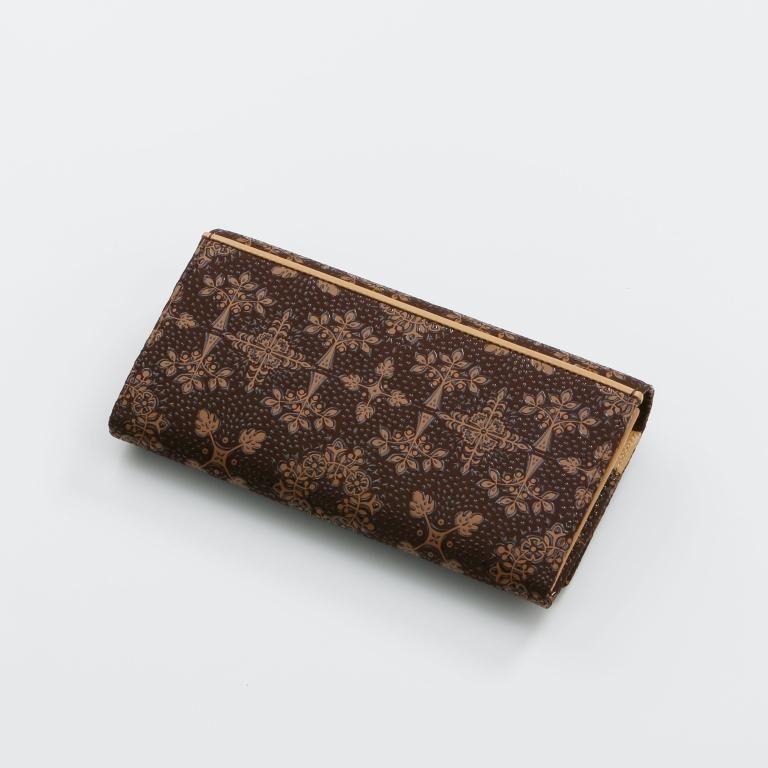 「花のリース」「樫の葉」「実のなる木」「鶏頭(けいとう)の花」の4つのモチーフを印伝の技で描き、