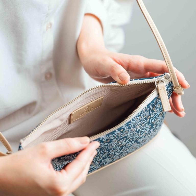 ショルダー紐の長さは自在に調整可能で、肩掛けも斜め掛けもでき、コンパクトでいつでも動きやすいのが特徴です。