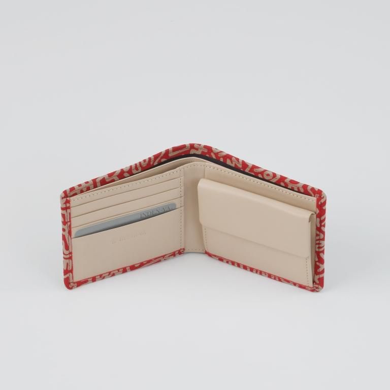 ジャケットやスーツなどのポケットに収められる二つ折りタイプのお財布。