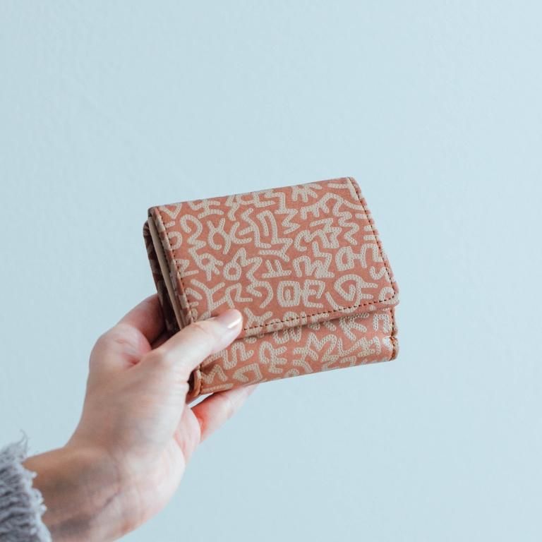 ベーシックな二つ折りタイプのお財布。お札とカード複数枚を収納しても、コンパクトで使いやすいサイズ。
