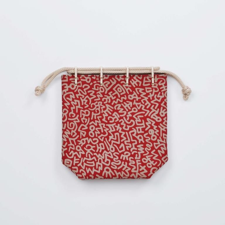 各色ともキース・ヘリングのアートを大胆に使用しながらも、アイボリーの更紗でシックな雰囲気に。