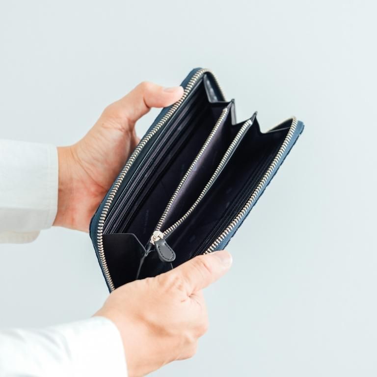 ラウンド型のファスナーでスムーズに開閉できる長財布。