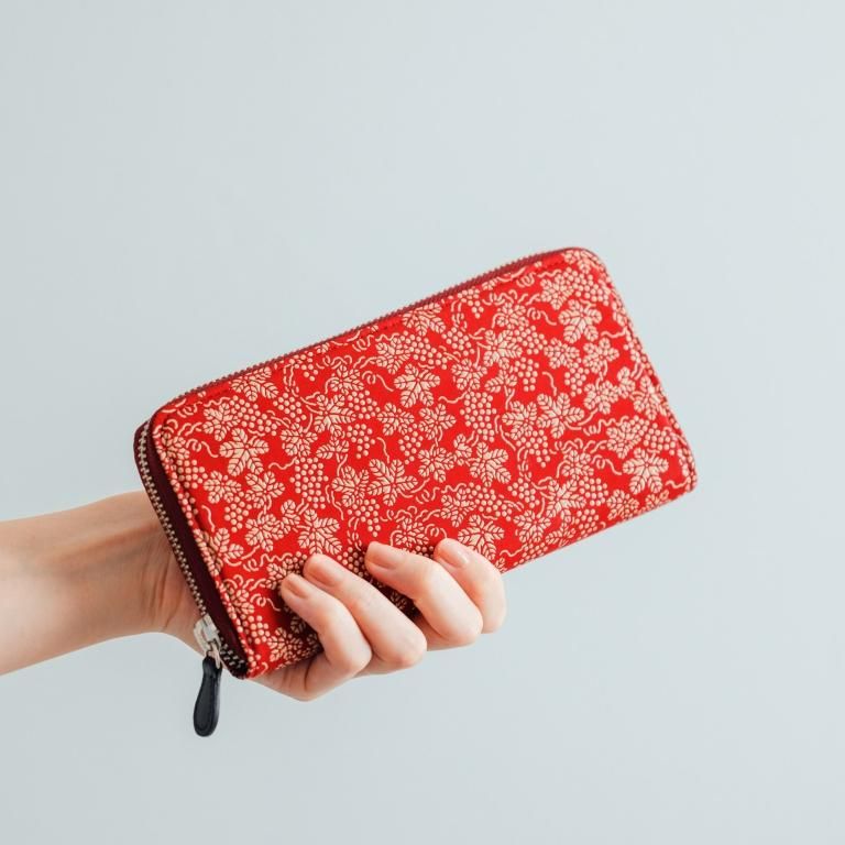 ラウンド型のファスナーでスムーズに開閉できる長財布。