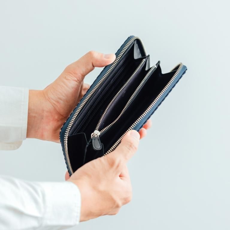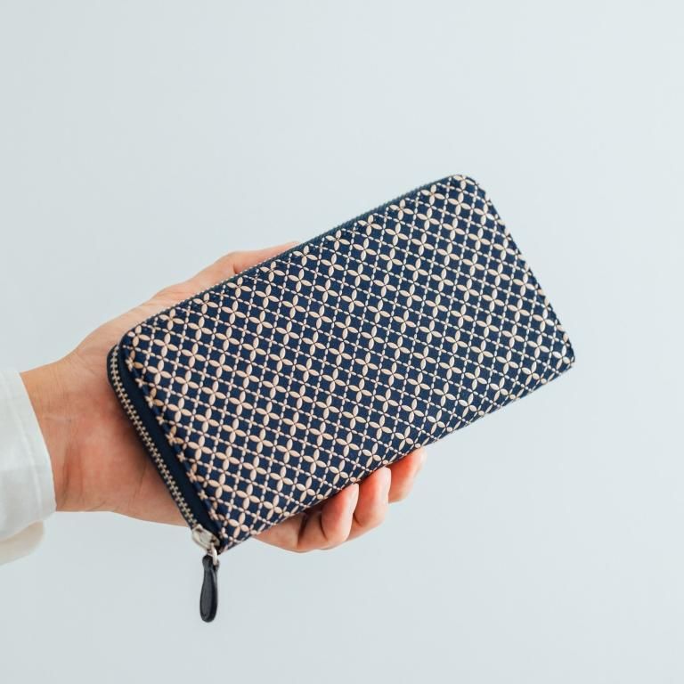 ラウンド型のファスナーでスムーズに開閉できる長財布。