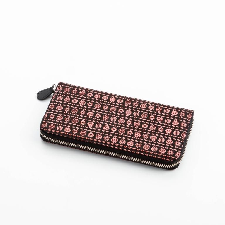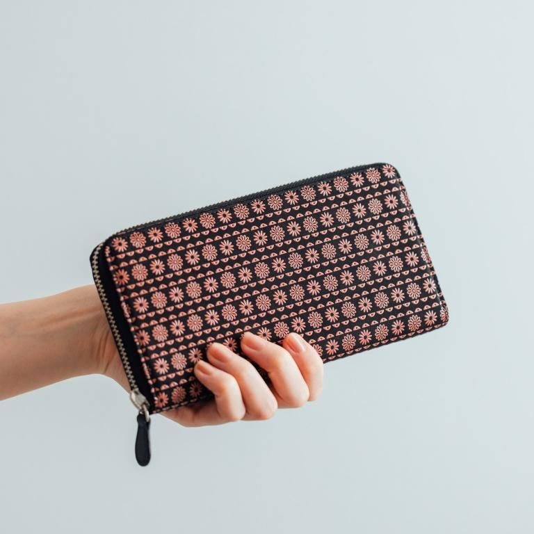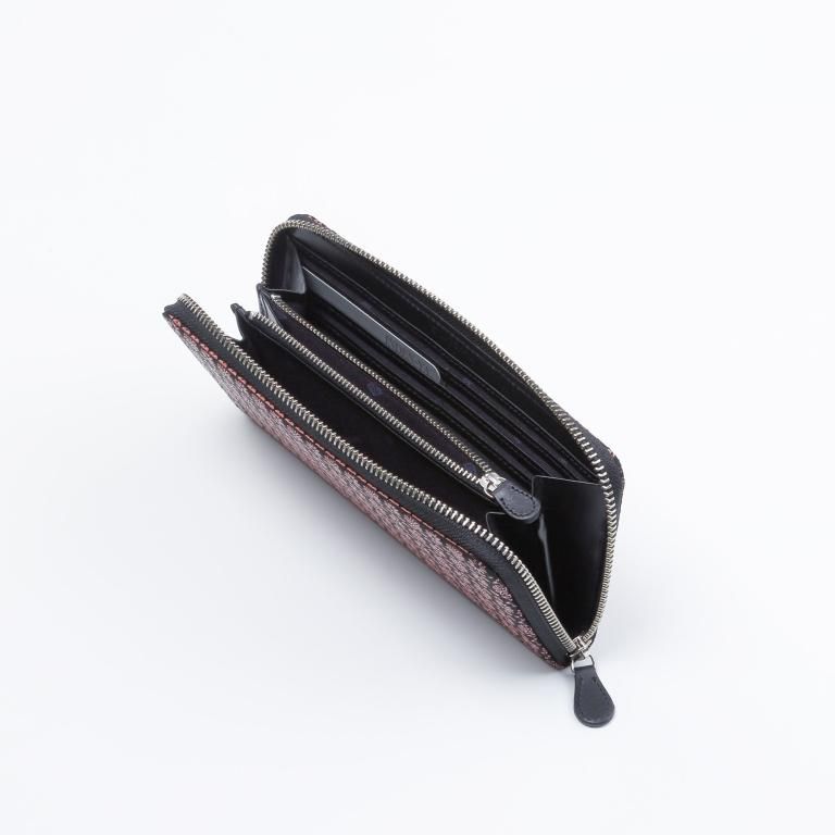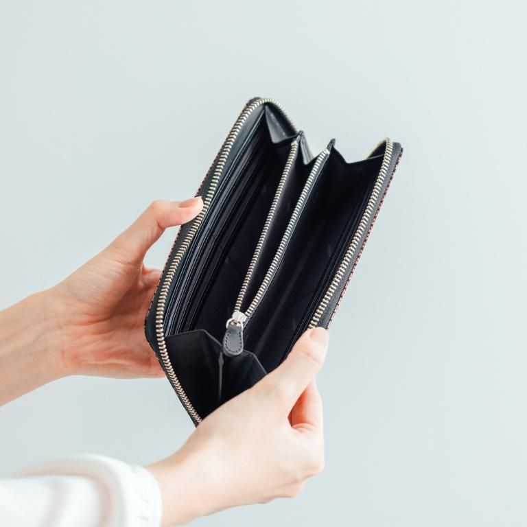 ラウンド型のファスナーでスムーズに開閉できる長財布。