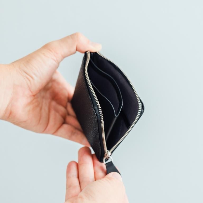 必要最小限の小銭とカード、折りたたんだ紙幣を入れても少しの余裕が生まれるサイズ感が魅力の小銭入です。