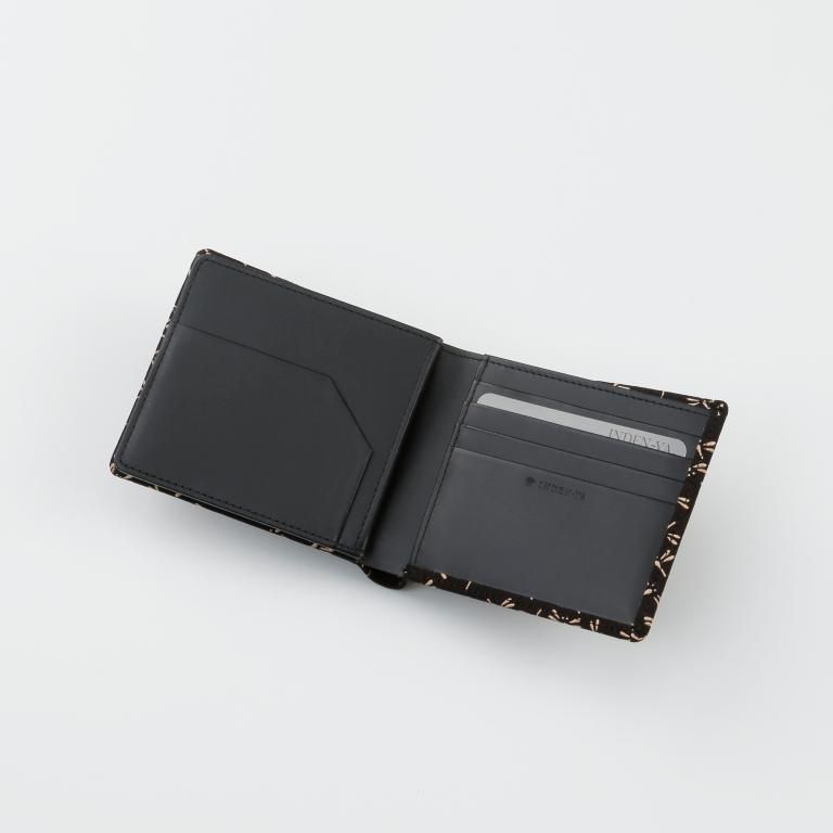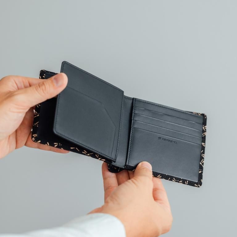 ジャケットやスーツなどのポケットにもスマート収められる二つ折りタイプの札入。