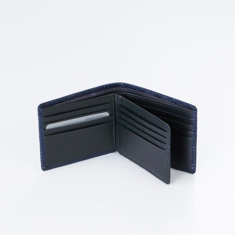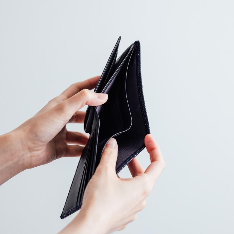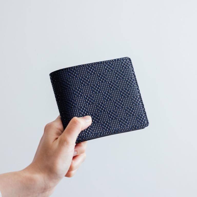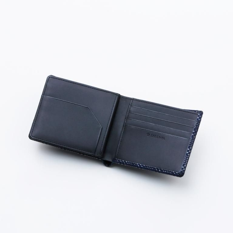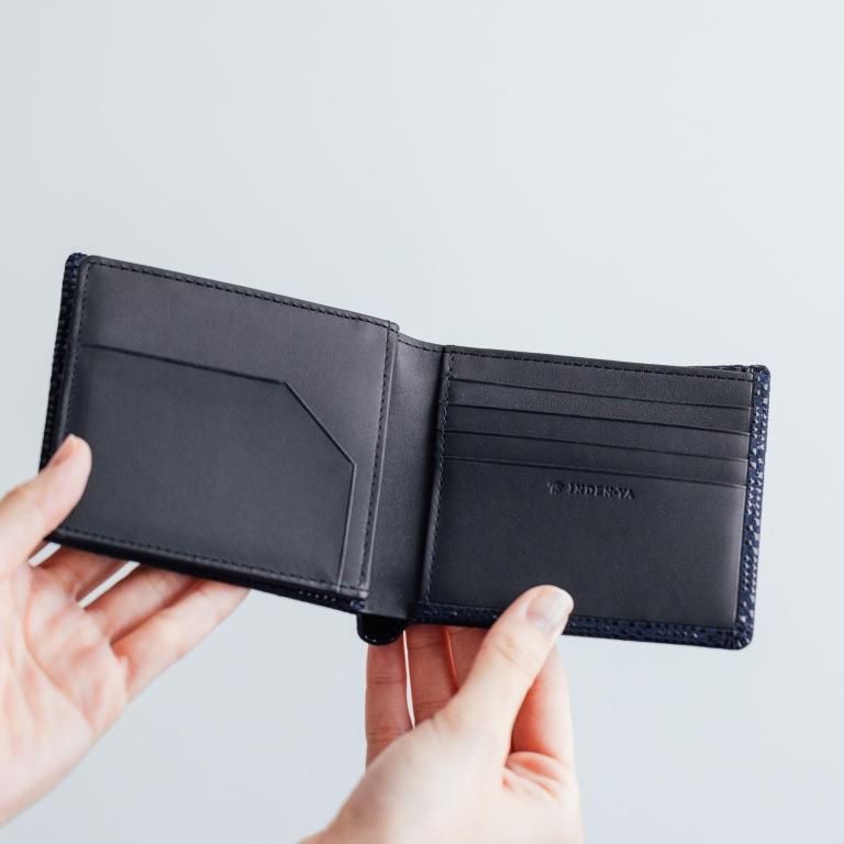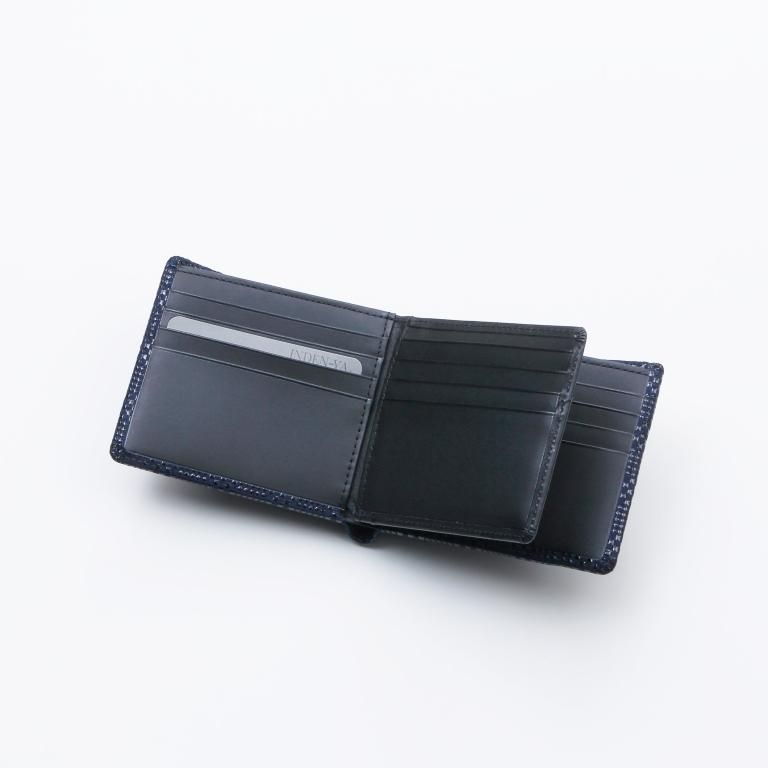 ジャケットやスーツなどのポケットにもスマート収められる二つ折りタイプの札入。