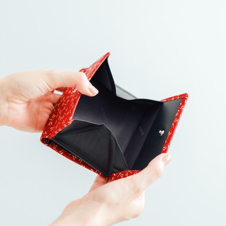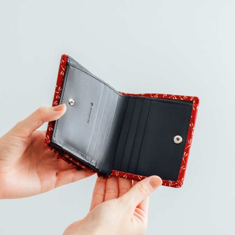 ベーシックな二つ折りタイプのお財布。お札とカード複数枚を収納しても、コンパクトで使いやすいサイズ。