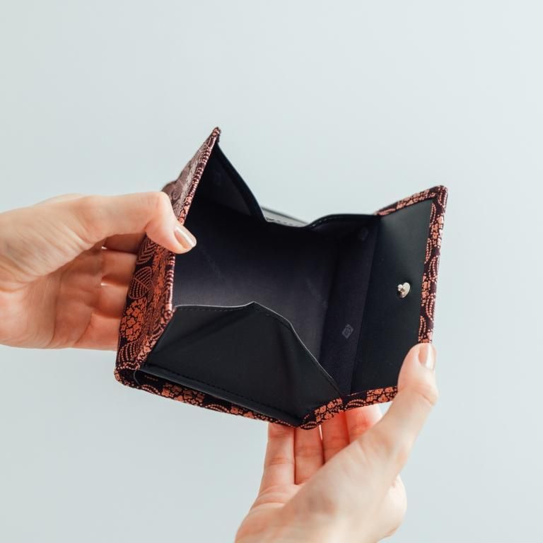 - 口前はホック留め/背胴にホック留めのボックス型小銭入×1