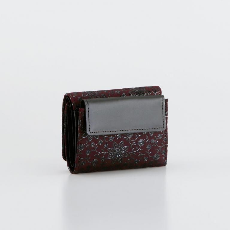 - 口前はホック留め/3つ折り/背胴にホック留め小銭入×1
