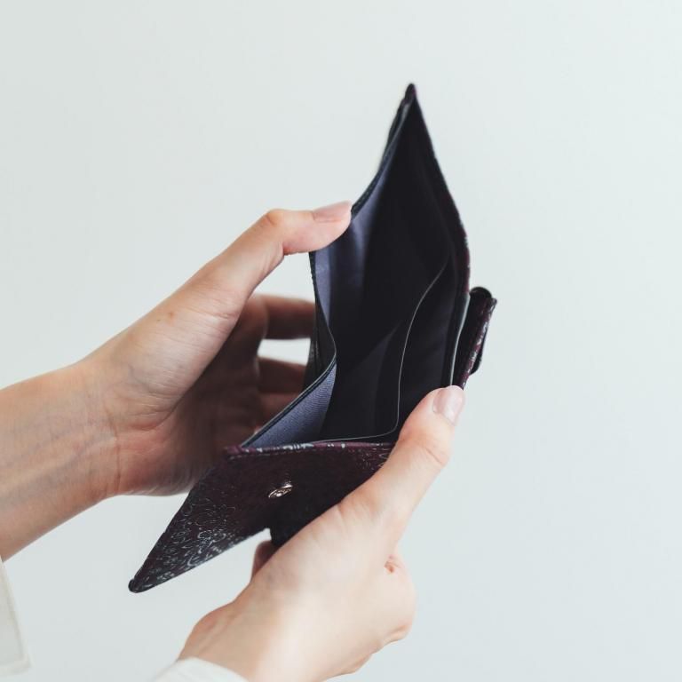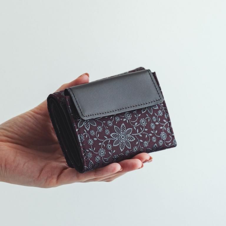 印傳屋の札入でもっとも小さく軽量な、三つ折りタイプのコンパクトウォレット。