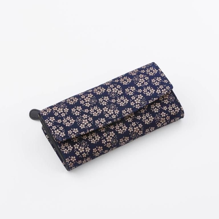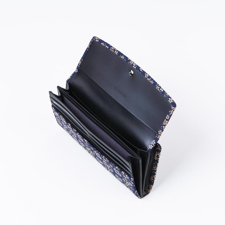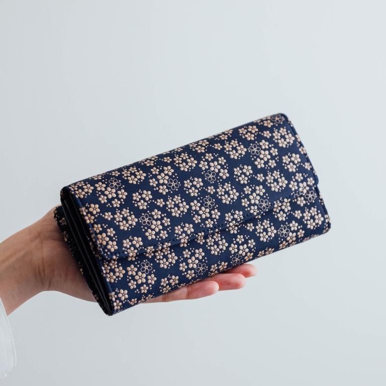 印伝革ならではの手触りと、艶やかな漆模様を贅沢に愉しめるようにデザインした、オーセンティックな長財布。