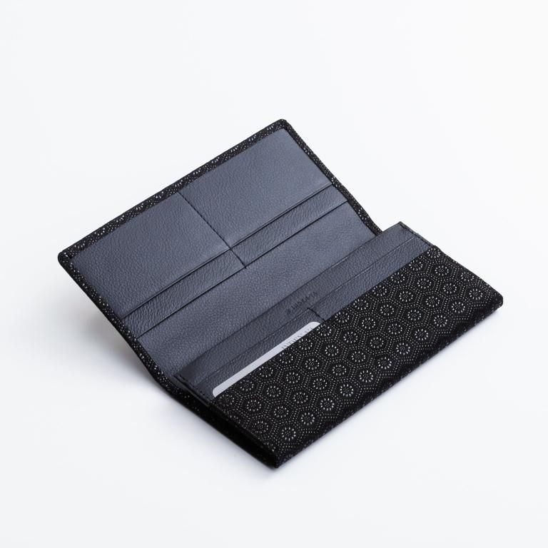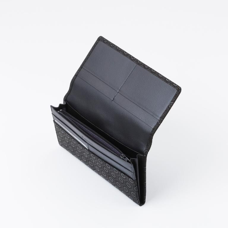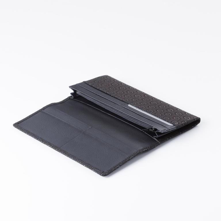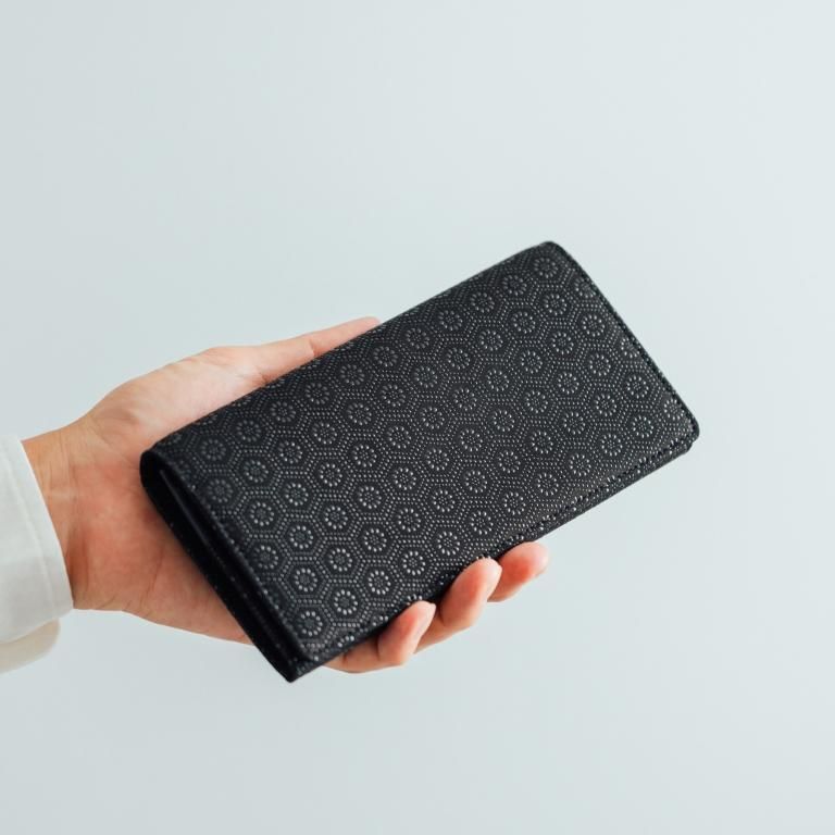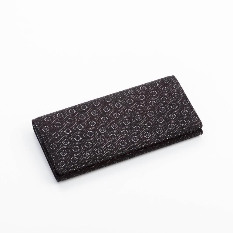 印伝革ならではの手触りと、艶やかな漆模様を贅沢に愉しめるようにデザインしたメンズに人気の長財布。