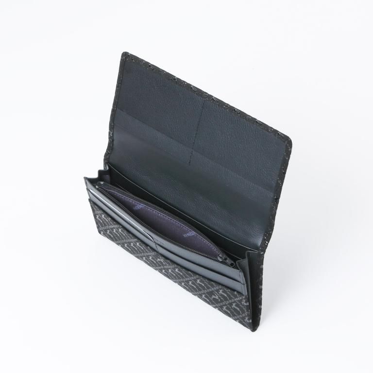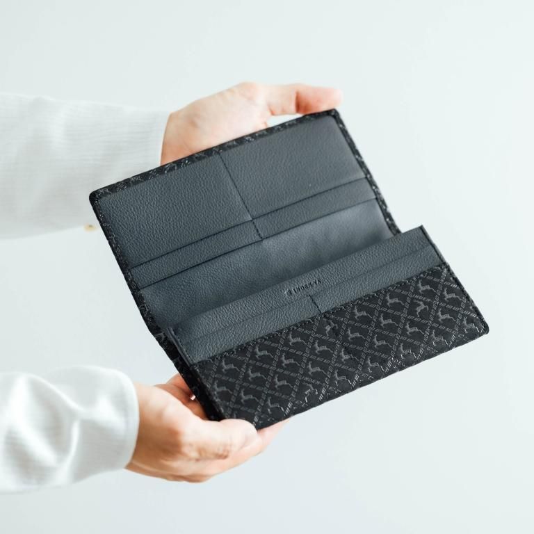 印伝革ならではの手触りと、艶やかな漆模様を贅沢に愉しめるようにデザインしたメンズに人気の長財布。