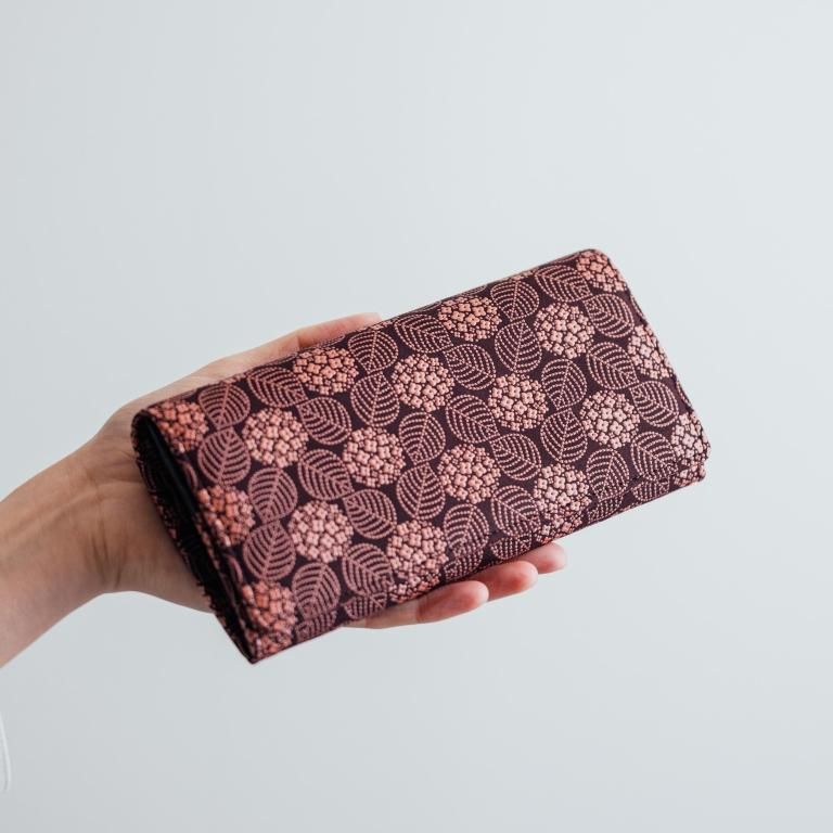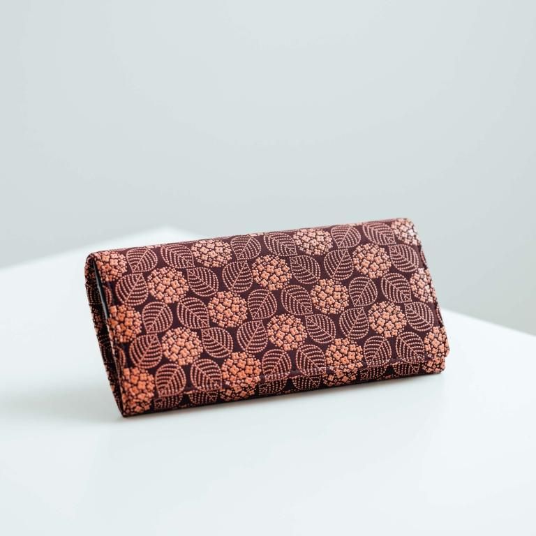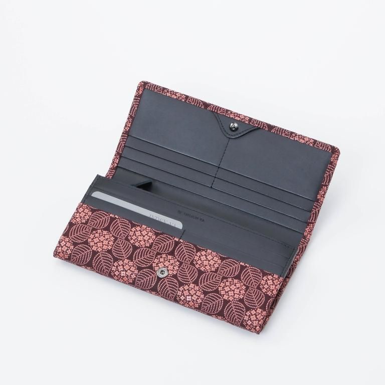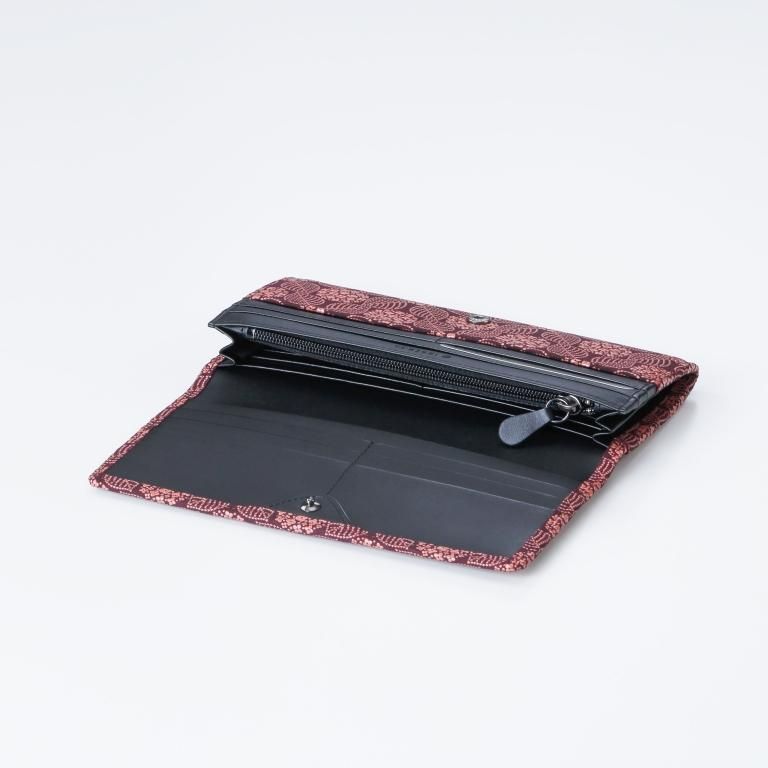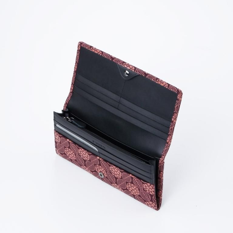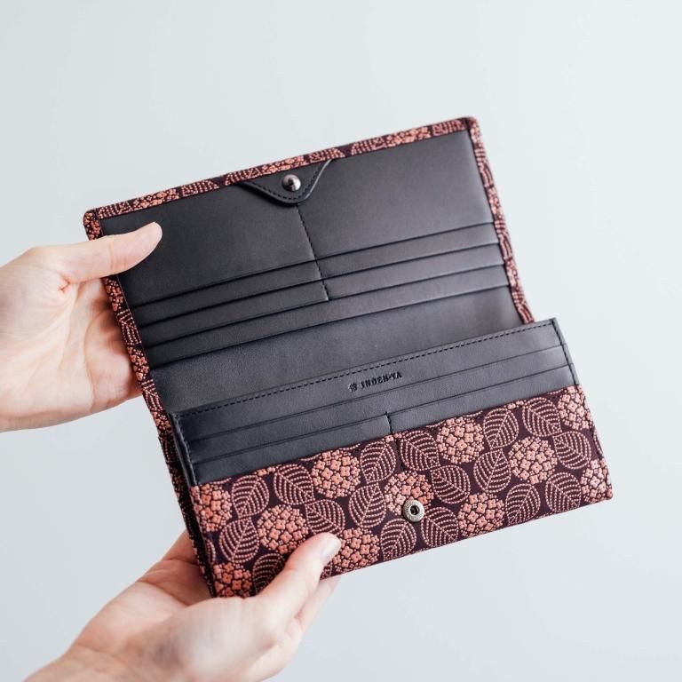 印伝革ならではの手触りと、艶やかな漆模様を贅沢に愉しめるようにデザインしたレディースの長財布。