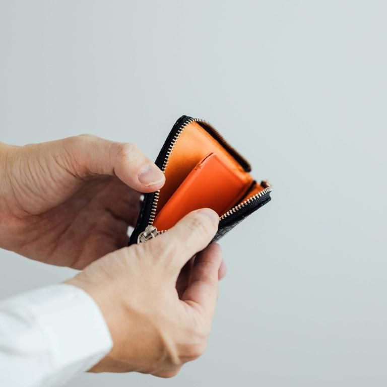 必要最小限の小銭とカード、折りたたんだ紙幣を入れても少しの余裕が生まれるサイズ感が魅力の小銭入です。