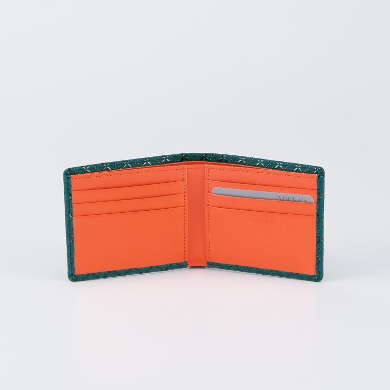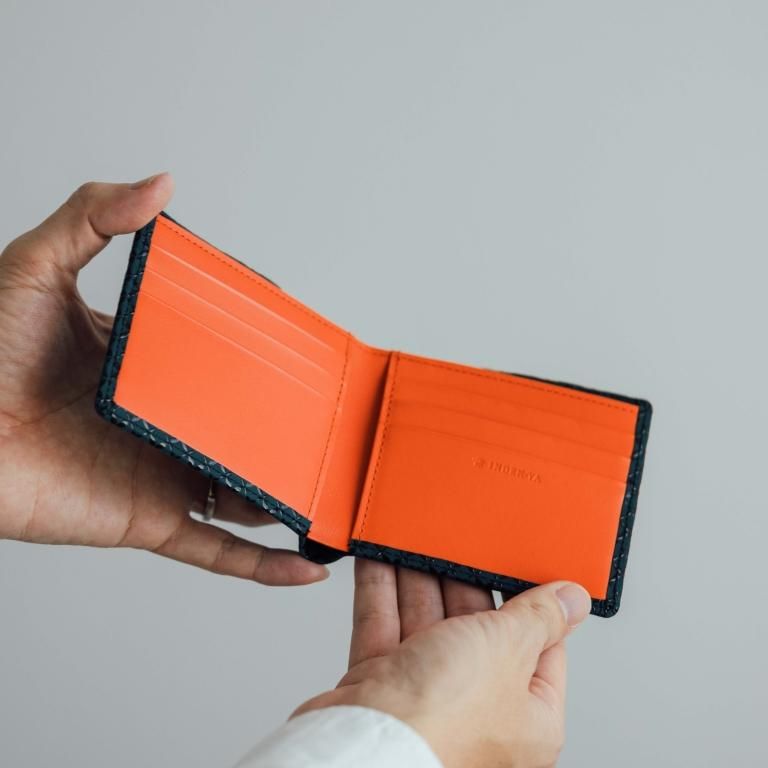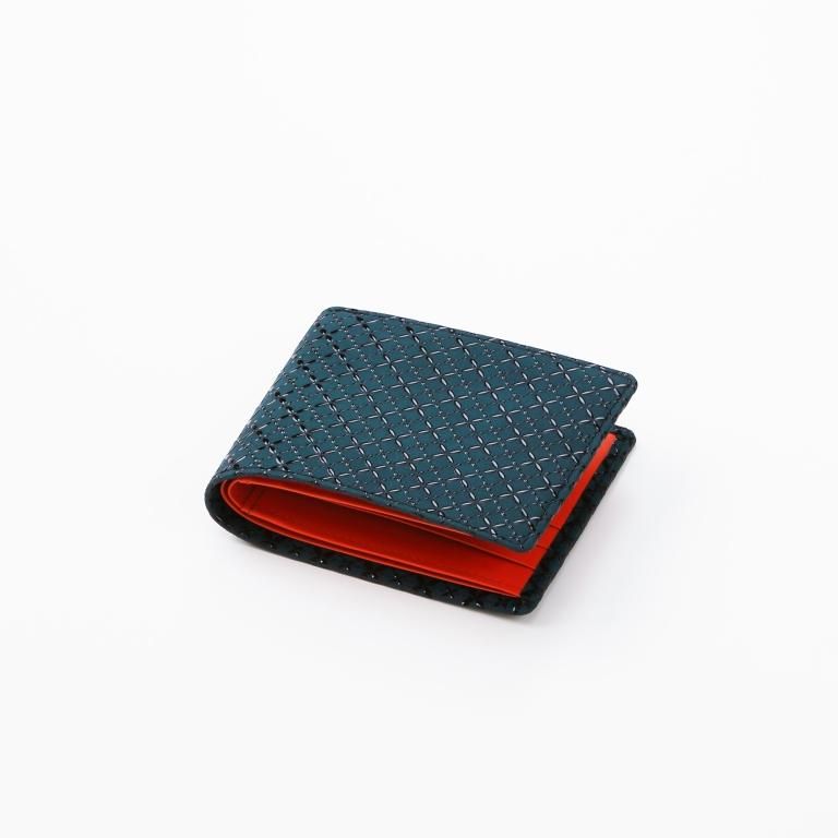 小銭入がないシンプルな札入。札入部分には中仕切りが付き、6つのカードポケットを備えています。