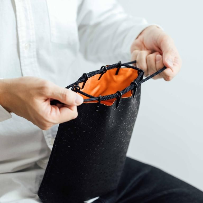 外側はシックな黒漆が艶めく、オーセンティックスタイル。内側は差し色となる鮮やかなオレンジの配色。