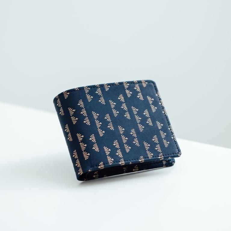 ジャケットやスーツなどのポケットに収められる二つ折りタイプのお財布。