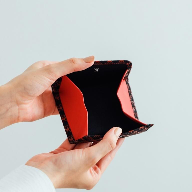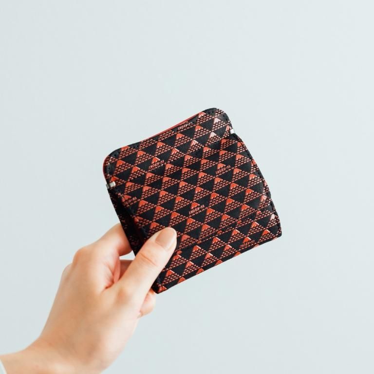 薄型で小さなバッグや上着のポケットなどに収めやすいボックス型の小銭入れ。