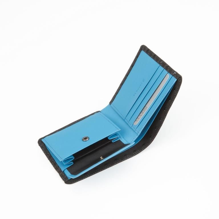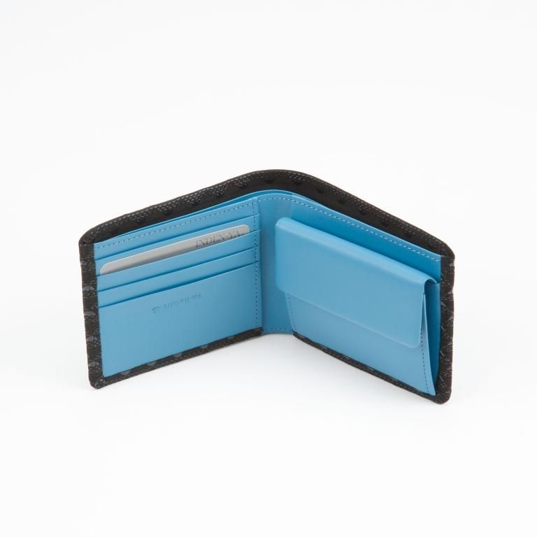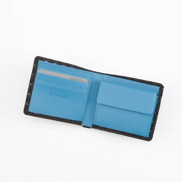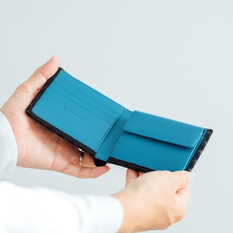 ジャケットやスーツなどのポケットに収められる二つ折りタイプのお財布。