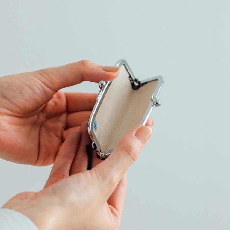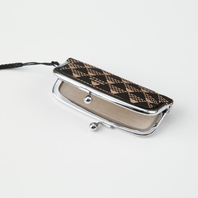 口金タイプの印鑑ケースです。付属する朱肉は紐で結ばれているため取り外しも可能。