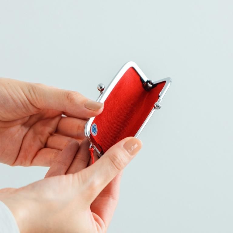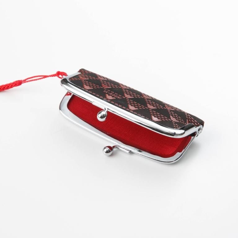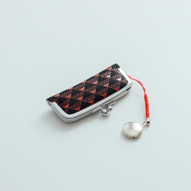 口金タイプの印鑑ケースです。付属する朱肉は紐で結ばれているため取り外しも可能。