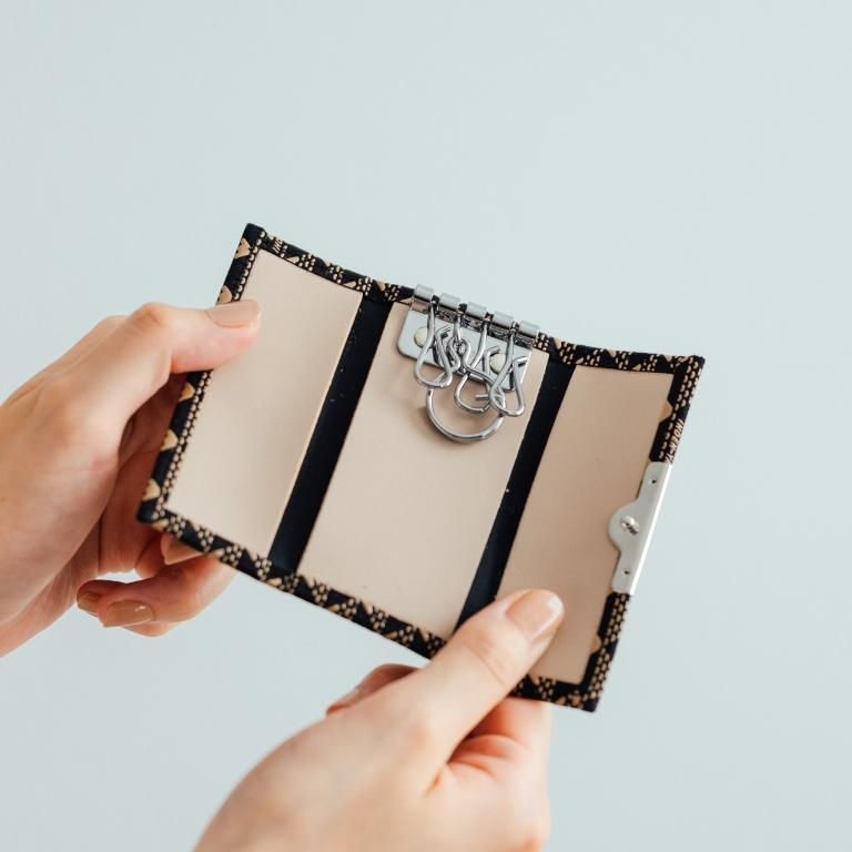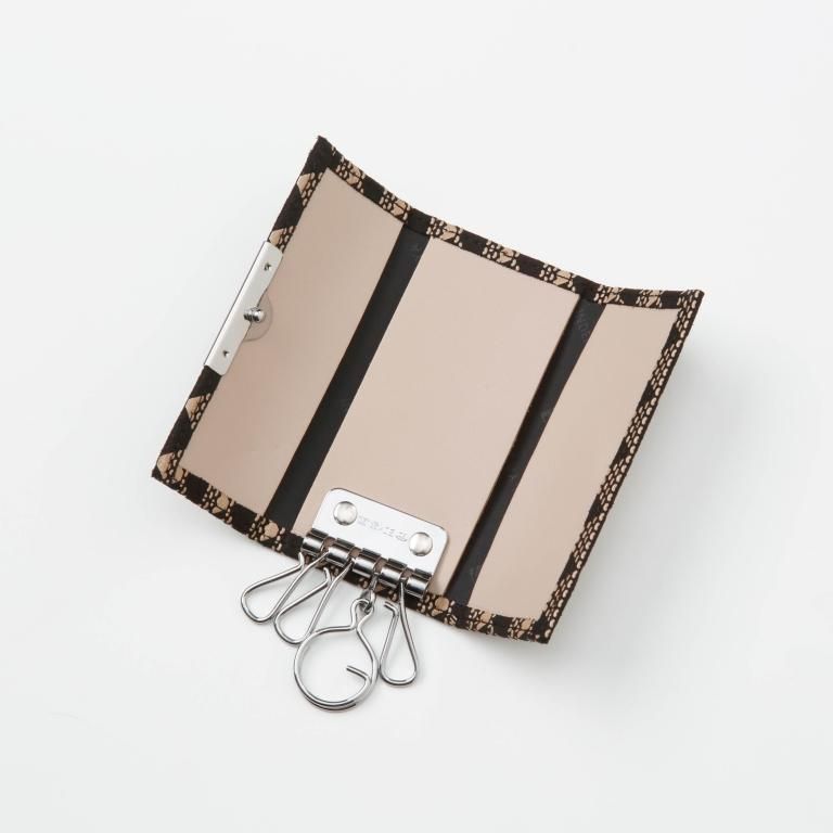 4つのキーホルダーを手触りの良い印伝で包んだキーケースです。さりげなく粋に携えられるスリムな仕様。