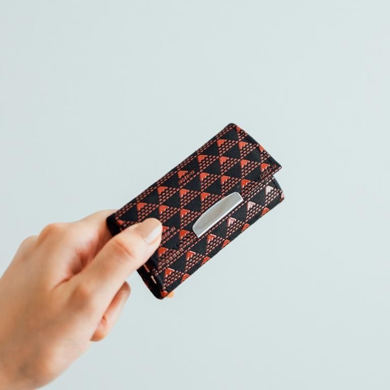 甲州の地で富士を仰ぎ見てきた印傳屋が、その高嶺へ畏敬の念を寄せながら漆で描いた「たかね」シリーズ。