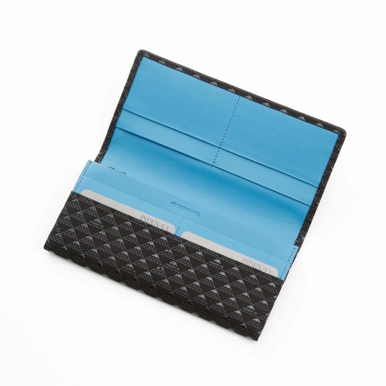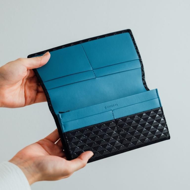 印伝革ならではの手触りと、艶やかな漆模様を贅沢に愉しめるようにデザインしたメンズに人気の長財布。