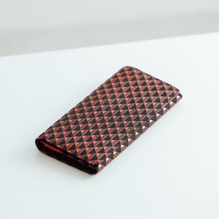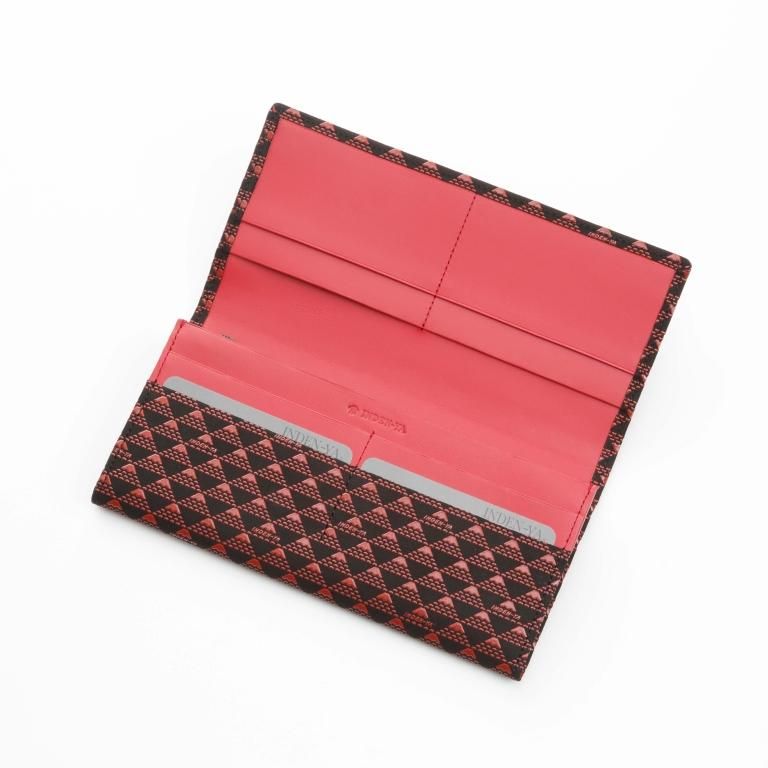 印伝革ならではの手触りと、艶やかな漆模様を贅沢に愉しめるようにデザインしたメンズに人気の長財布。