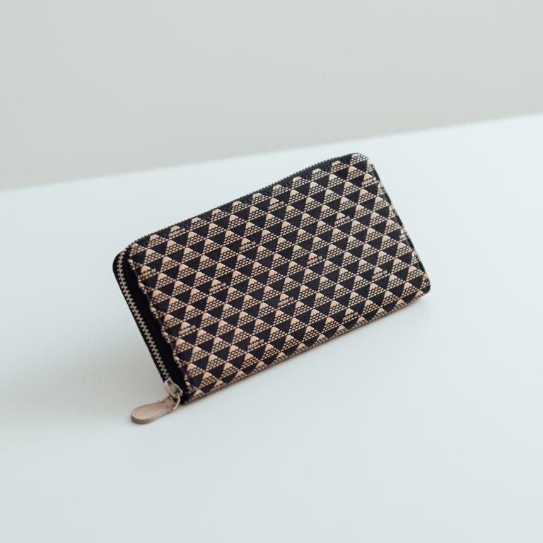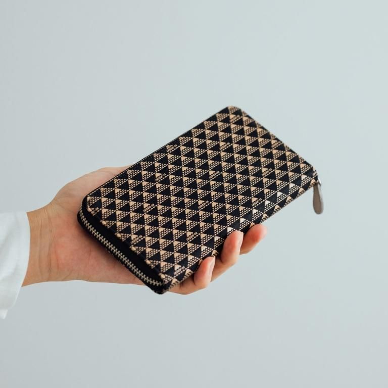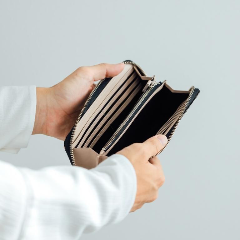 ラウンド型のファスナーでスムーズに開閉できる長財布。