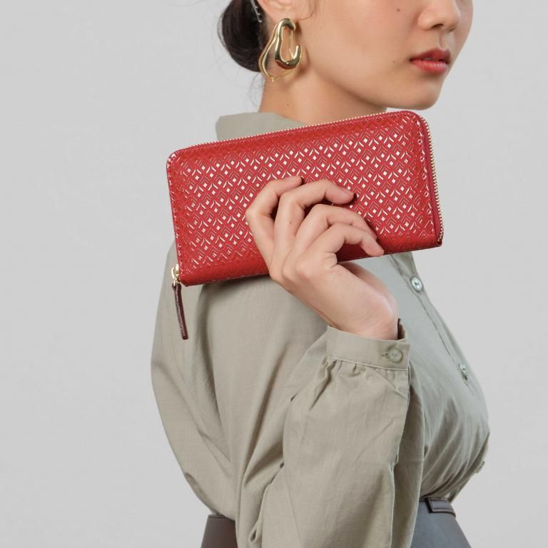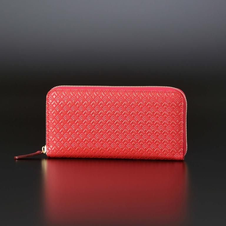 漆の光沢とゴールドの金具が上品な印象を醸すベーシックなラウンドファスナー長財布。