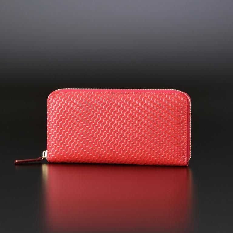 漆の光沢とゴールドの金具が上品な印象を醸すベーシックなラウンドファスナー長財布。