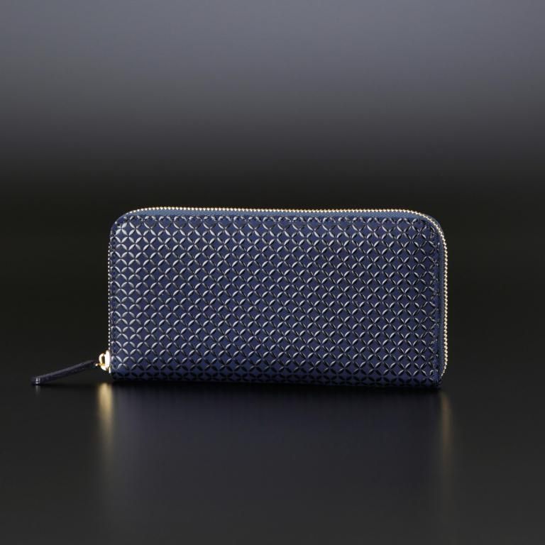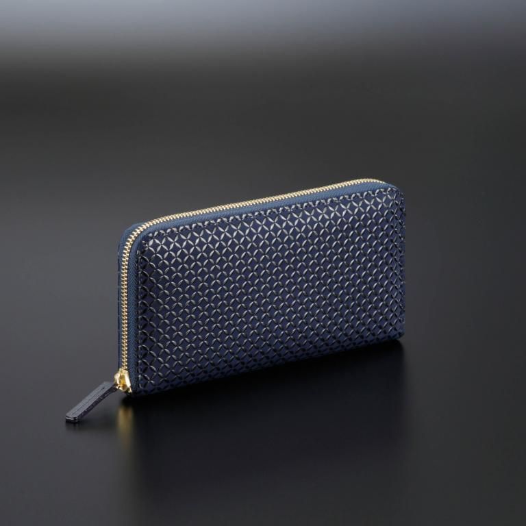 漆の光沢とゴールドの金具が上品な印象を醸すベーシックなラウンドファスナー長財布。