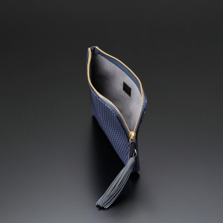 大きなタッセルがアクセント。内側には、手触りの良いスエード調のなめらかな裏地を使用し、デザインをより上質に演出します。