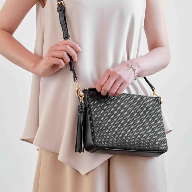 取り外し可能なフリンジがポイントのコンパクトなショルダーバッグ。