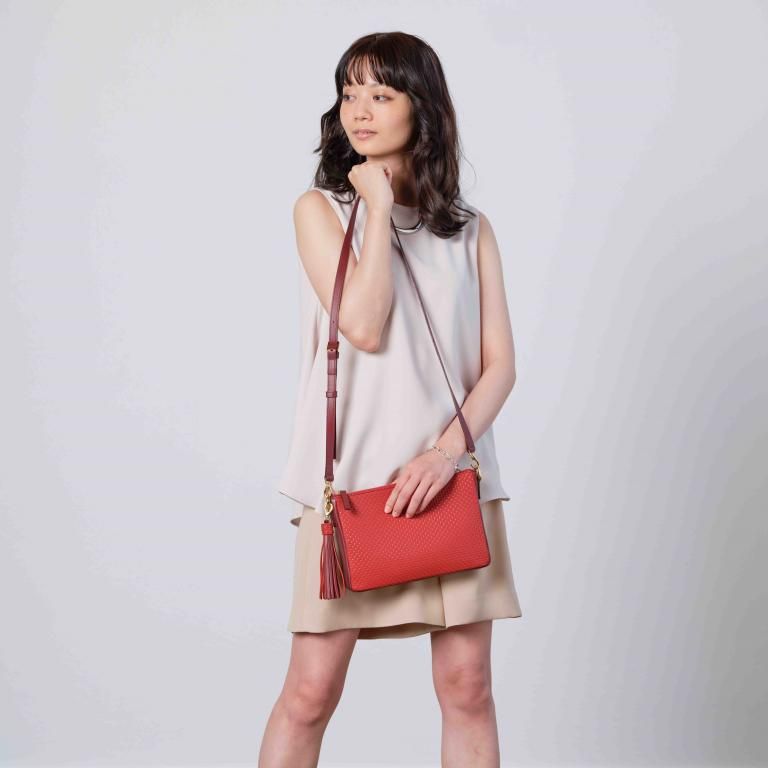 取り外し可能なフリンジがポイントのコンパクトなショルダーバッグ。