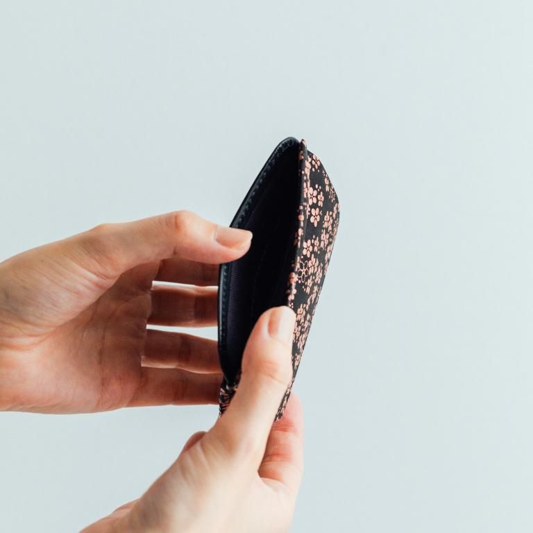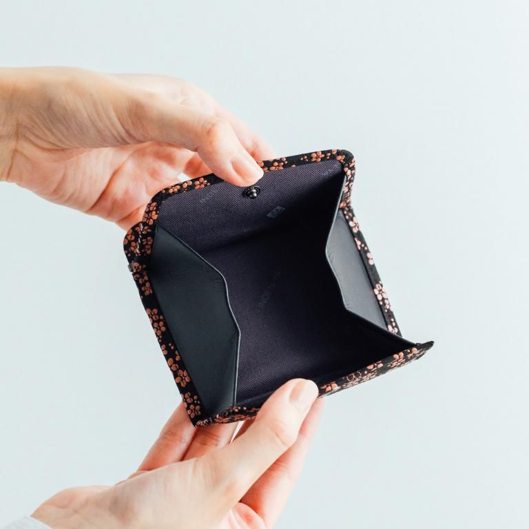 薄型で小さなバッグや上着のポケットなどに収めやすいボックス型の小銭入れ。