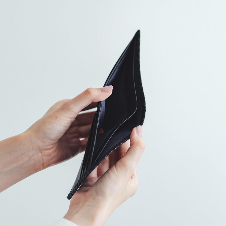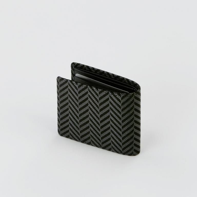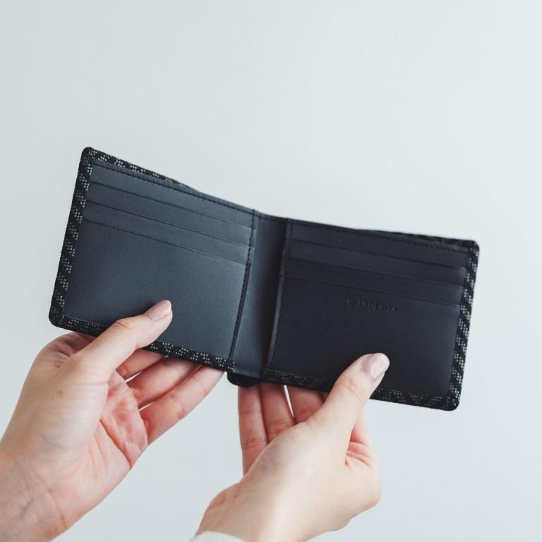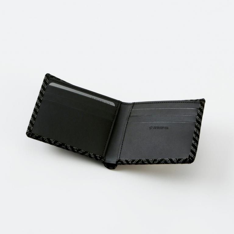 小銭入がないシンプルな札入。札入部分には中仕切りが付き、6つのカードポケットを備えています。