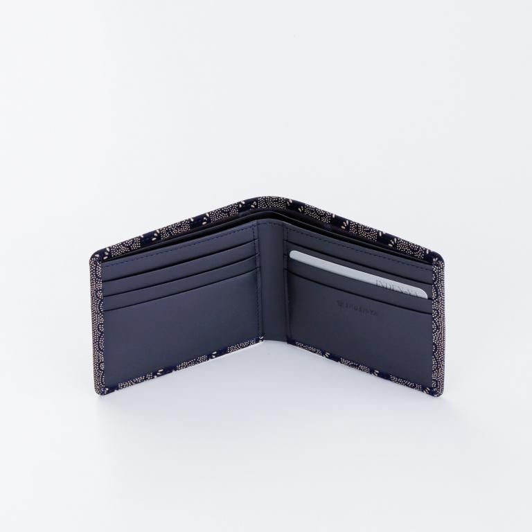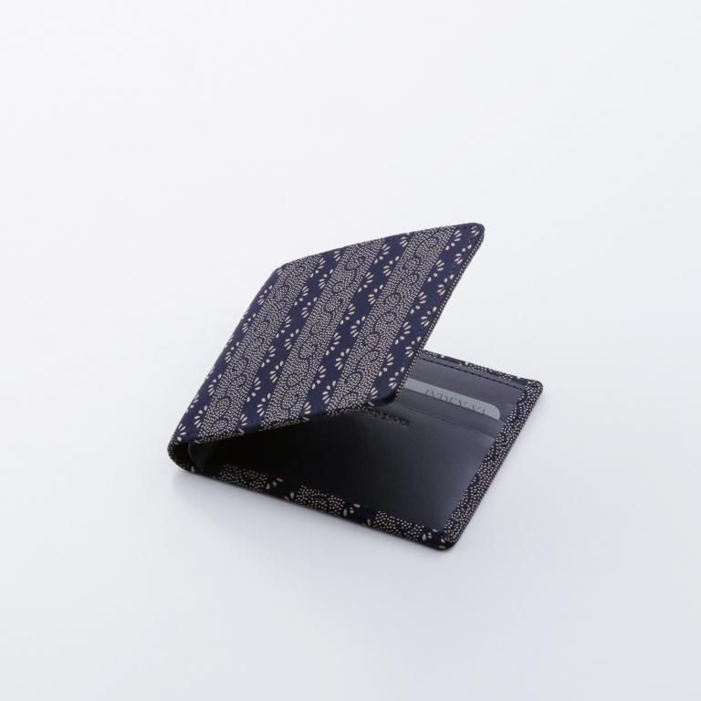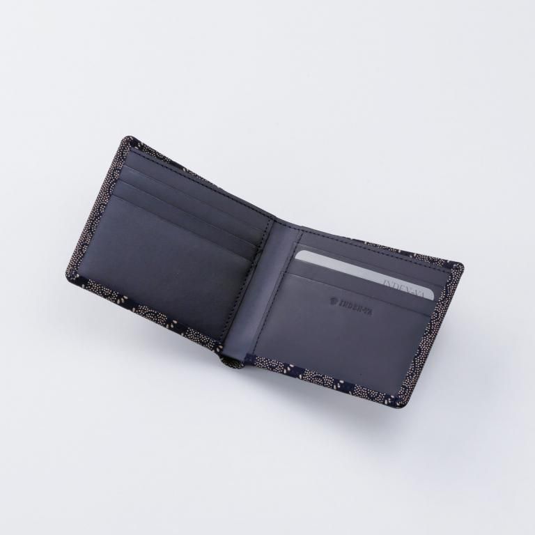 小銭入がないシンプルな札入。札入部分には中仕切りが付き、6つのカードポケットを備えています。