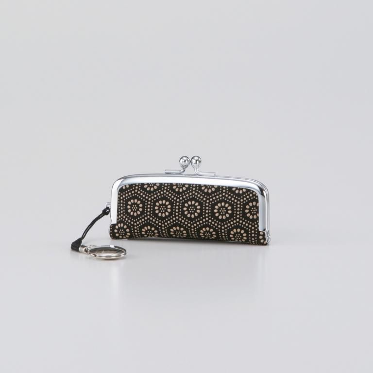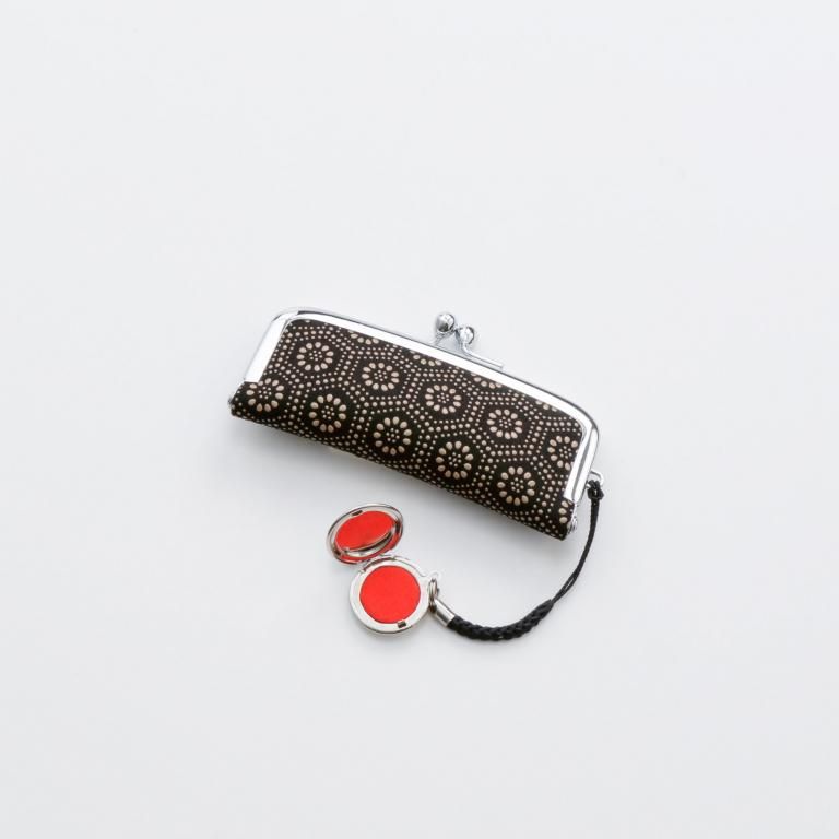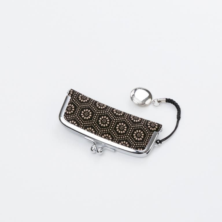 口金タイプの印鑑ケースです。付属する朱肉は紐で結ばれています。