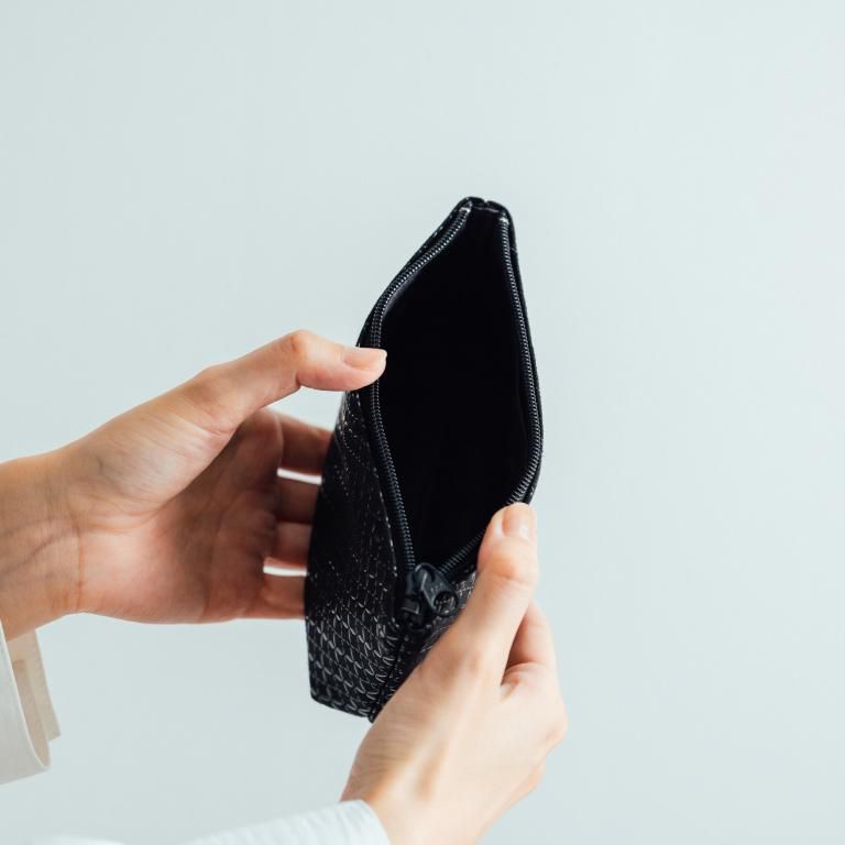 コンパクトながら、メイク道具はもちろんパスポートや通帳なども収納可能な印傳屋定番のポーチです。
