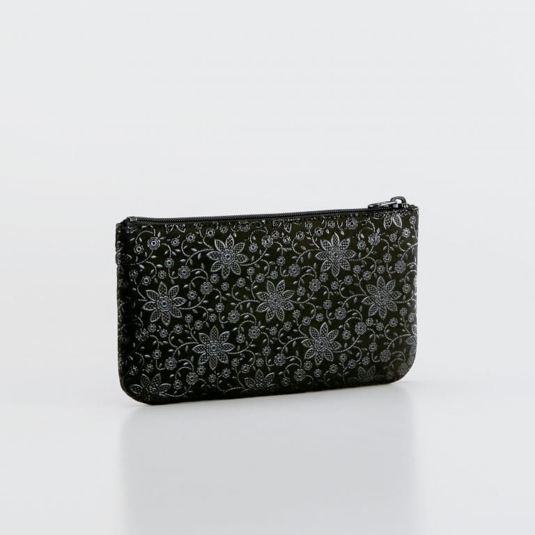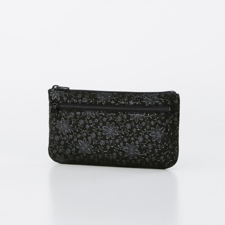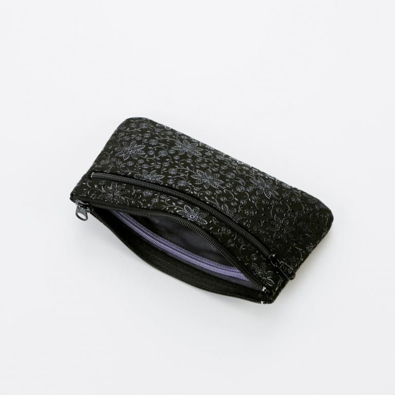 パスポートや通帳などの管理や持ち運びに便利なポーチです。背面にファスナーポケットが付いています。