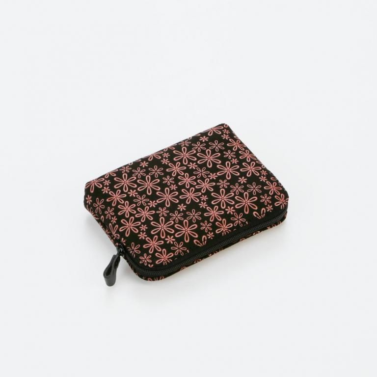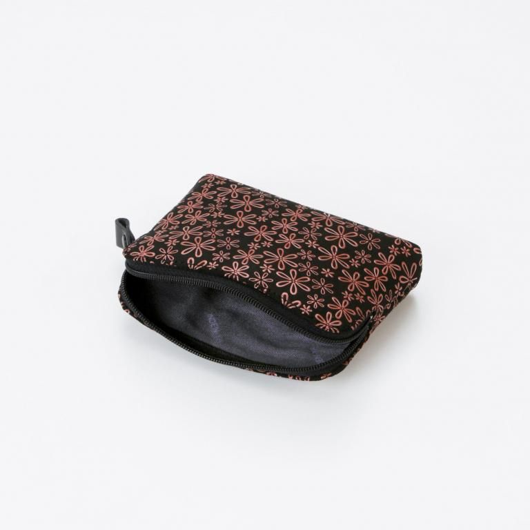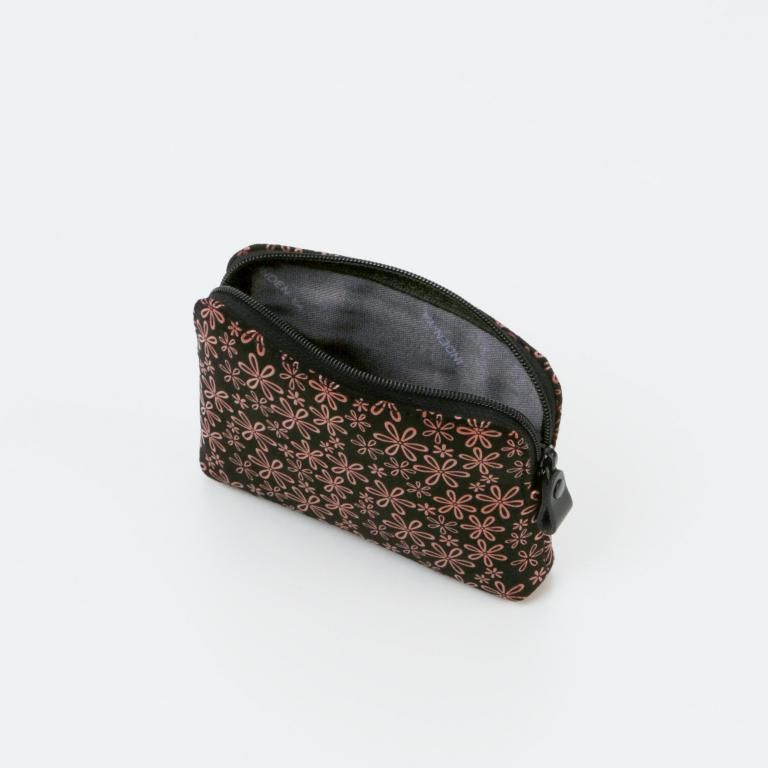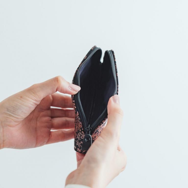 手のひらに収まる、小型ポーチです。中身が取り出しやすい丈夫なラウンドファスナー式。