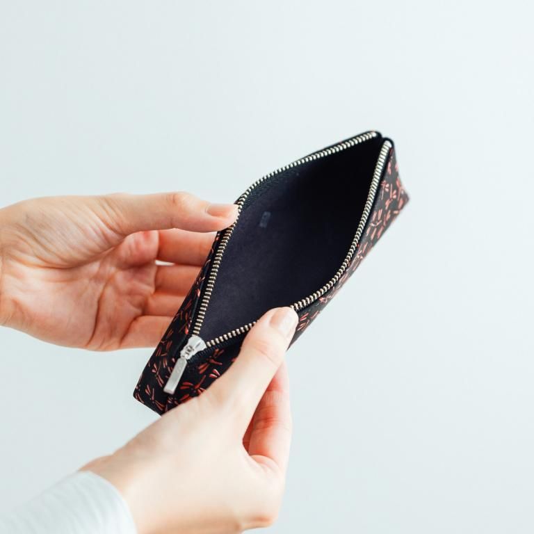 スマートでシンプルな定番のペンケース。小さなバッグにも入りやすく、テーブルや机などに置いても調和するデザインが人気。