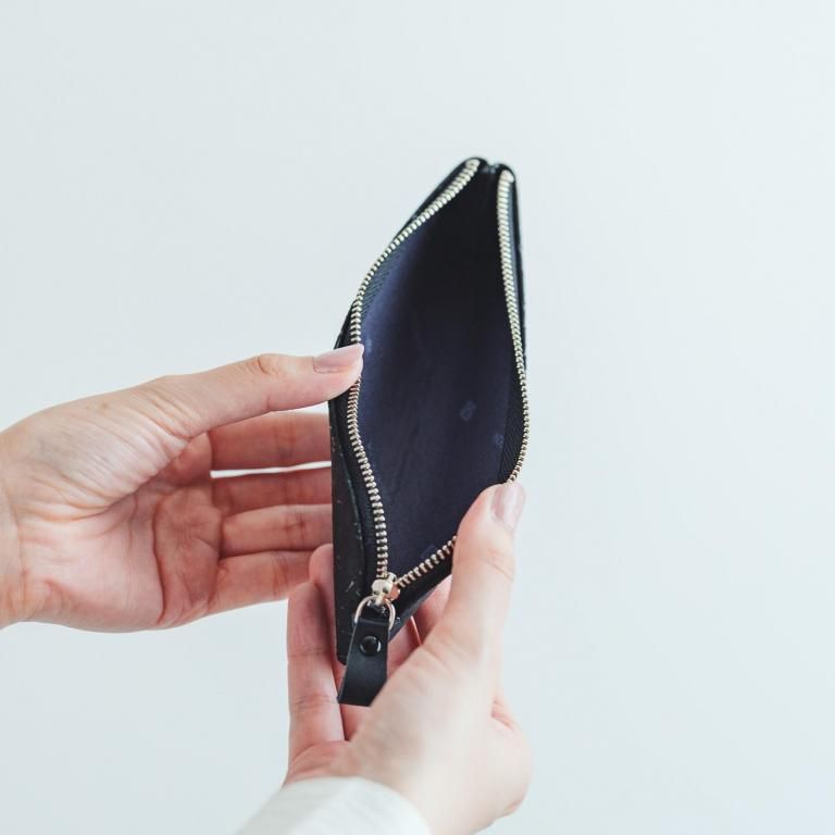 L字ファスナーのため大きく開いて中身が確認しやすいのが特徴です。