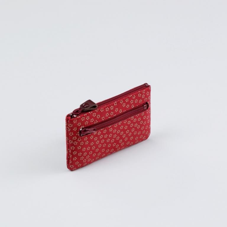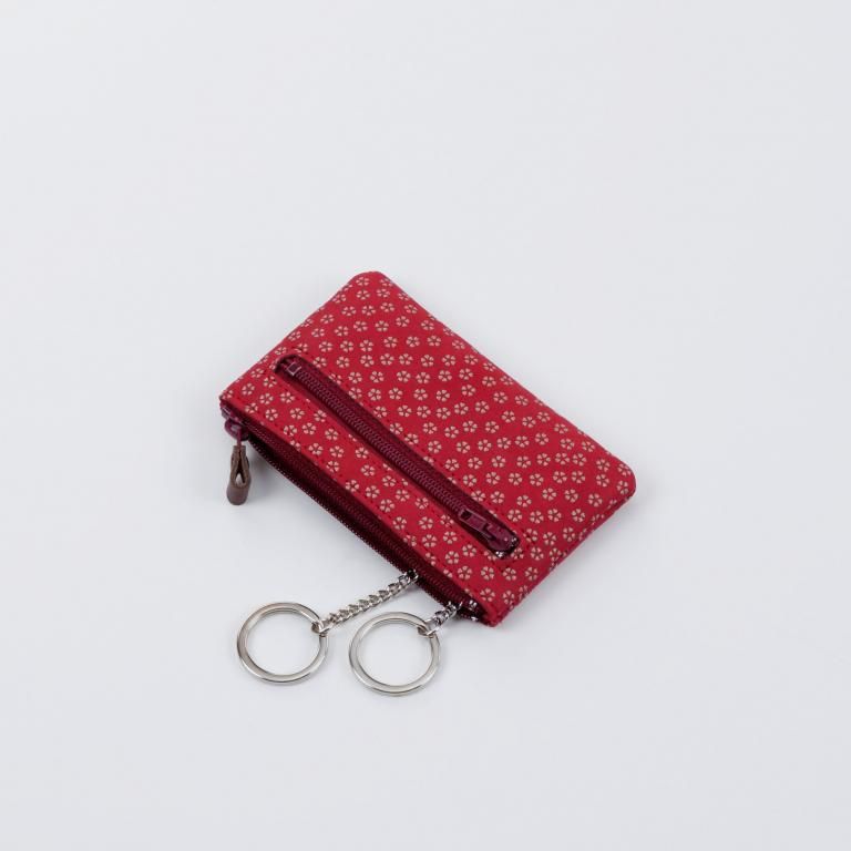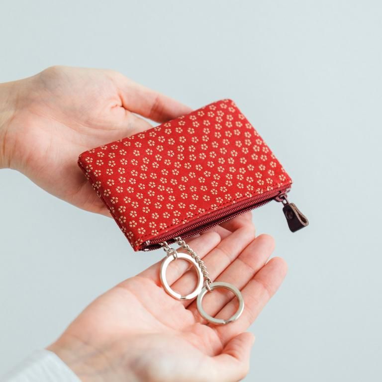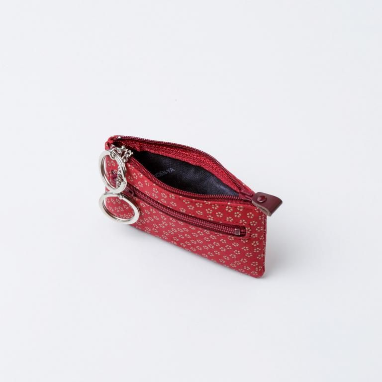 メイン収納は、車の電子キーも収まるサイズでファスナーを開いた内側に2つのキーリングを備えています。