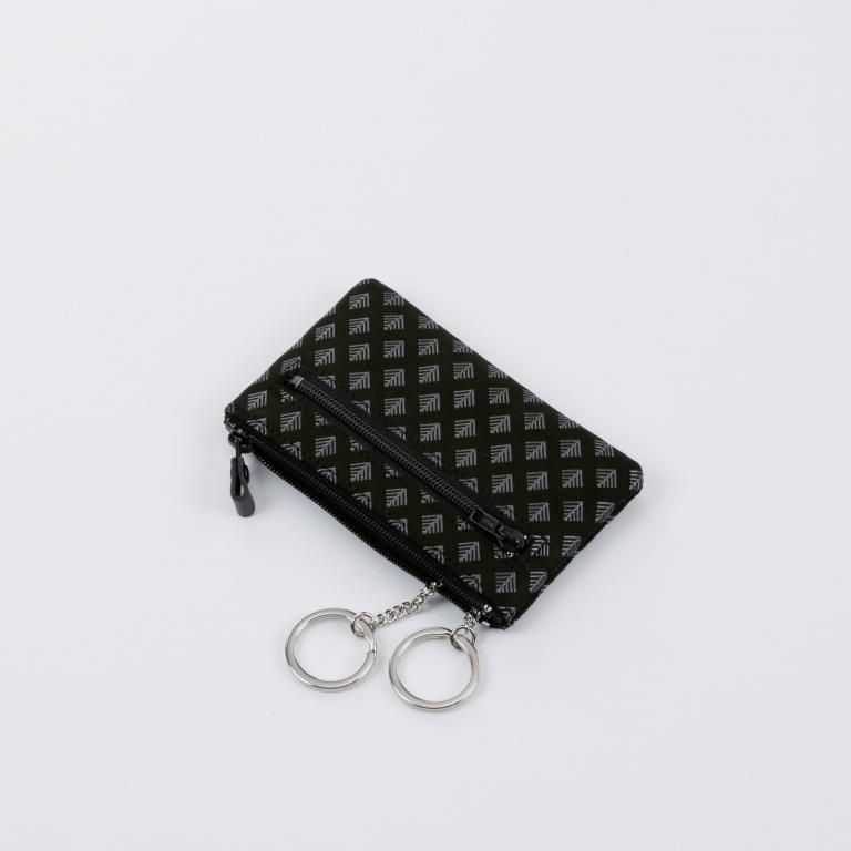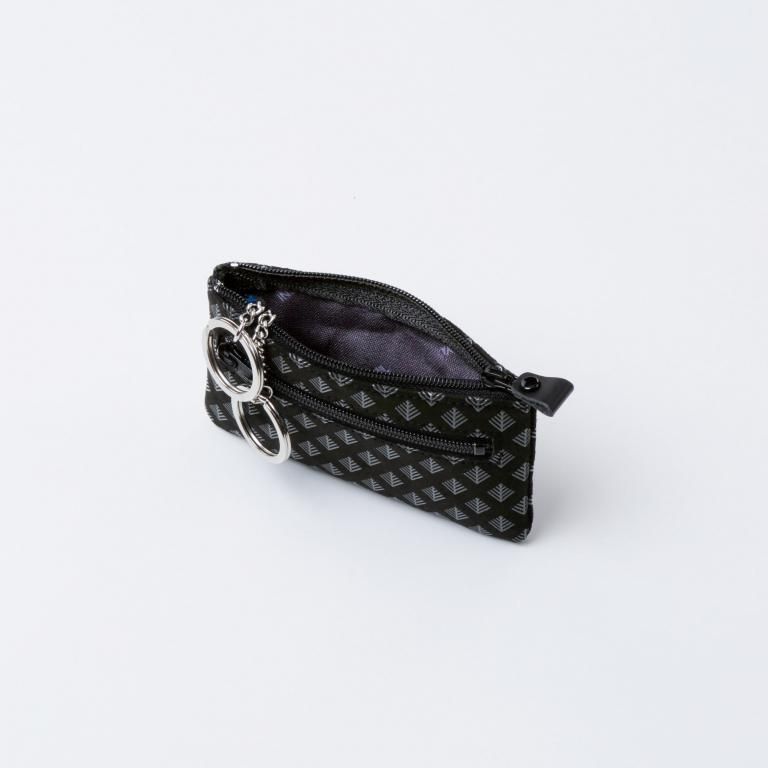 メイン収納は、車の電子キーも収まるサイズでファスナーを開いた内側に2つのキーリングを備えています。